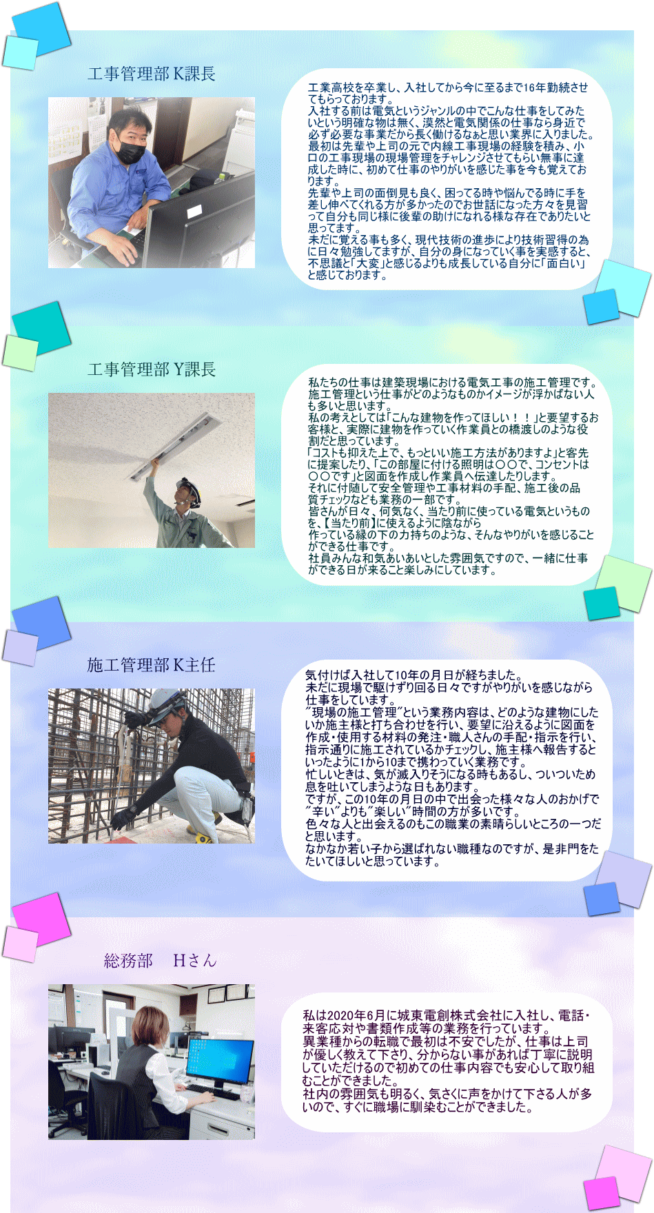 城東電創株式会社は電気設備の設計・施工を専門とする施工管理会社です。